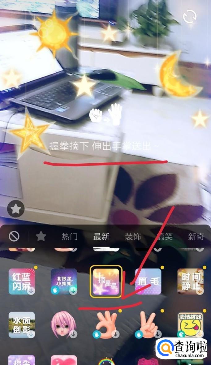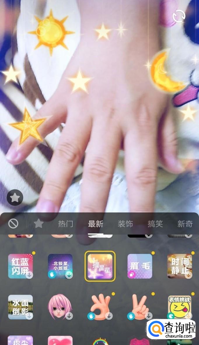 想要在抖音里拍这个摘星星视频,就要在道具里找到这个摘星星道具。下面分享下摘星星视频如何拍!