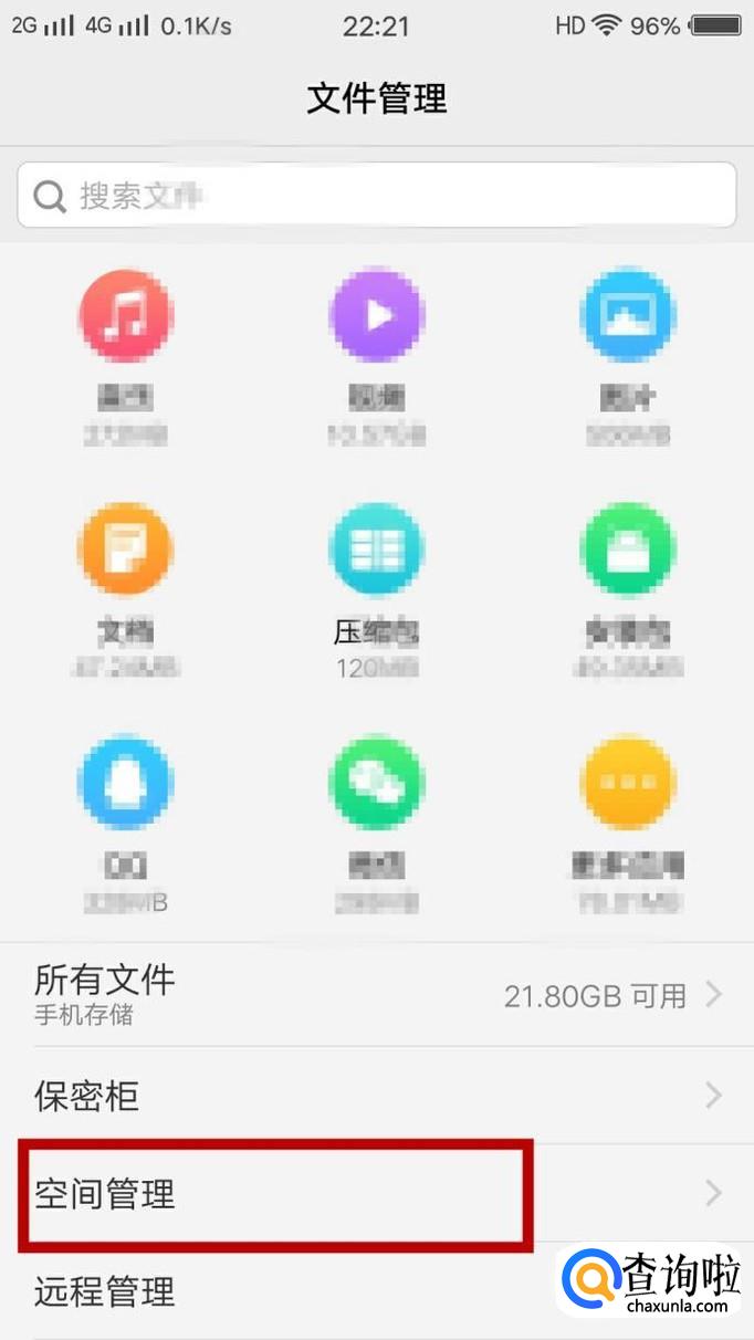 打开手机的“文件管理”,点击“空间管理”,如图所示。