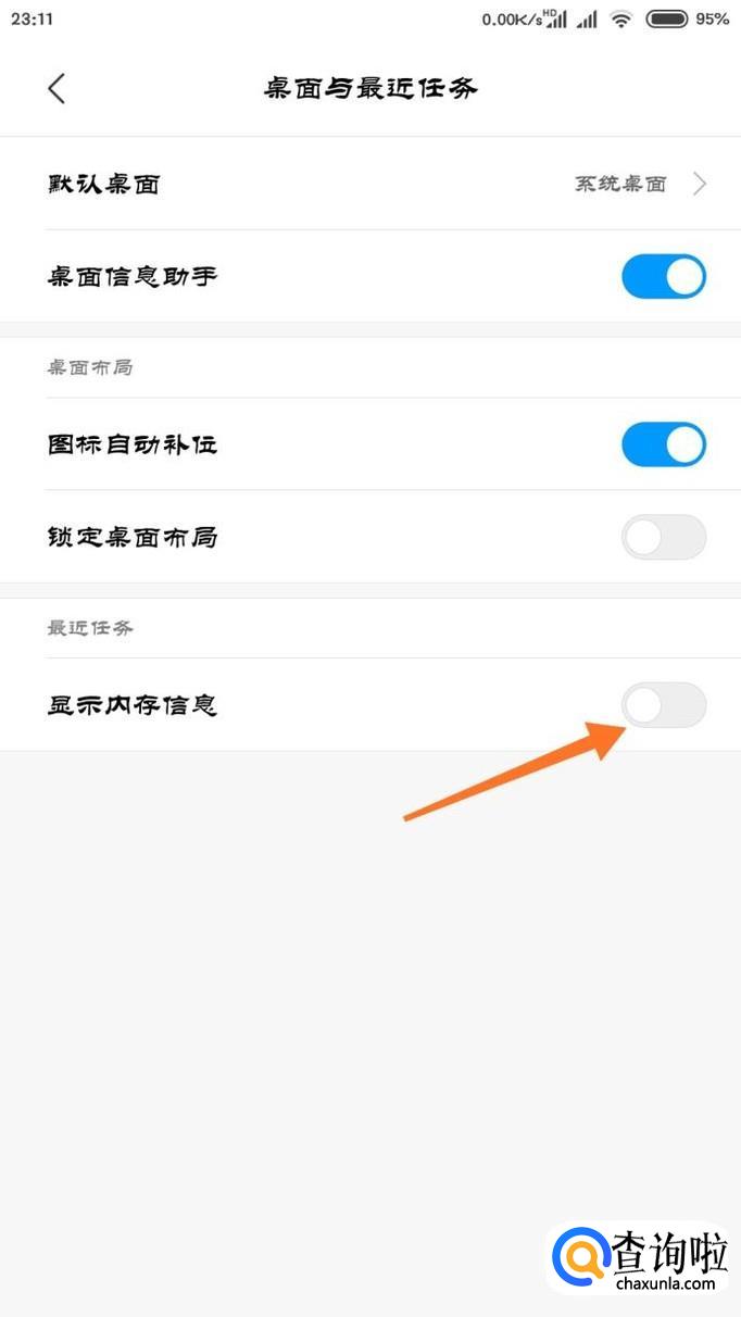 现在直接打开任务菜单,就可以在右上角看到内存剩余信息了,这个方法也同样适用于MIUI9。
