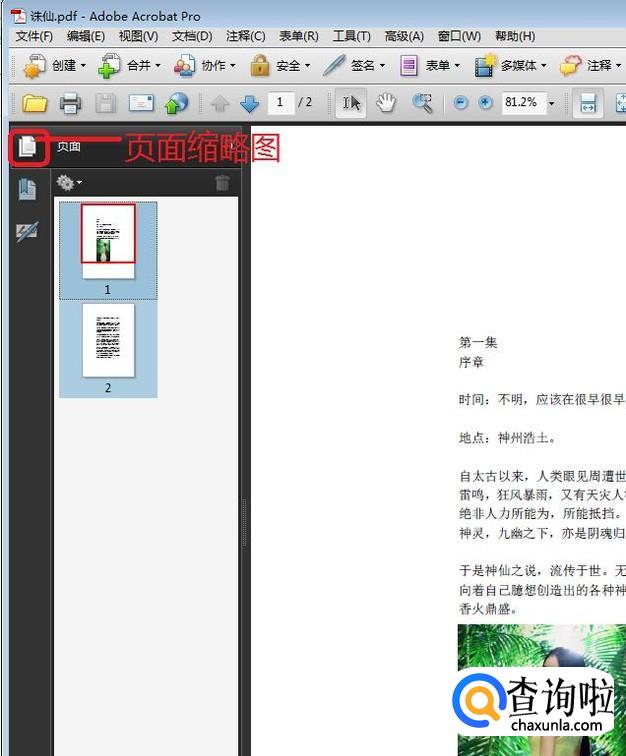 如图,点击文档中左侧“页面缩略图”按钮,切换到缩略图模式,在缩略图中用鼠标把所有页面都选中。