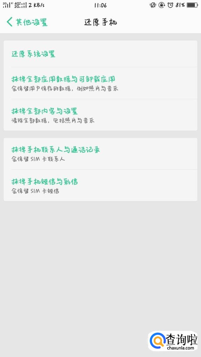进入其他设置过后,下滑选择最底端的还原手机,点击进入。