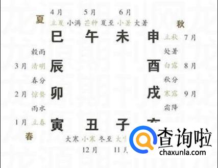 十二地支四季:寅卯辰为春,巳午未为夏,申酉戌为秋,亥 子丑为冬。