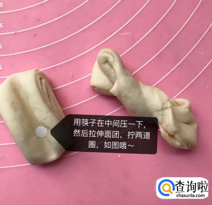 然后将面团拉成麻花状,之后再次醒发十分钟,如下图所示。