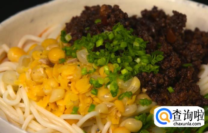 煮好之后,将豌豆尖、面条一起放入碗底中,再舀两勺耙软浓稠的豌豆汤,加一勺杂酱,最后撒一点葱花,热气腾腾的豌杂面就完成了。