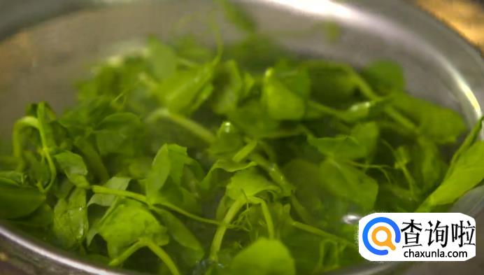 现在开始煮面,烧一锅水,等水沸后将豌豆尖放进去焯熟,然后下面条,煮3分钟,煮的中途可以加点冷水,以增加面条的口感。