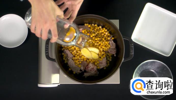 首先,将干豌豆提前一晚上浸泡,然后用泡软的豌豆和焯过水的龙骨加少许姜片,再倒入适量的水,一起炖煮。豌豆比较耐煮,需要2-3个小时,炖至软烂为佳。