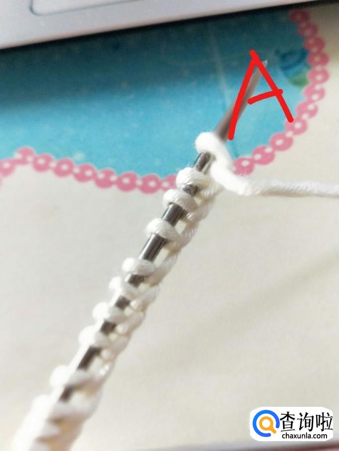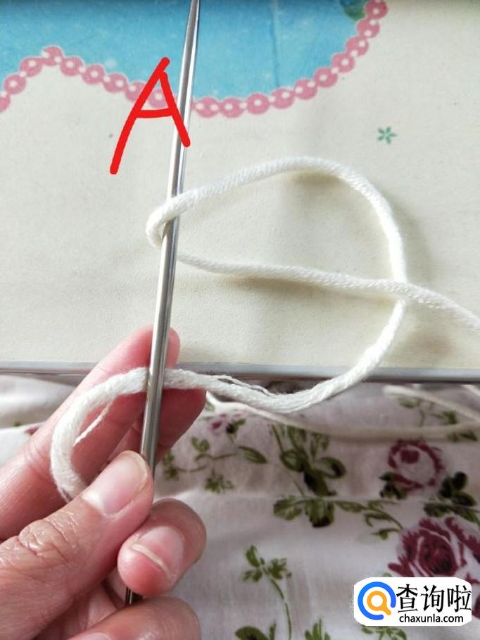 起针:左手握住A针,将毛线前端压在A针下,绕过右手拇指和食指,右手无名指顺势钩住毛线