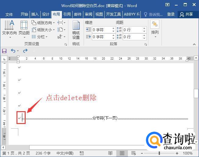 方法二:隐藏的分节符导致无法删除