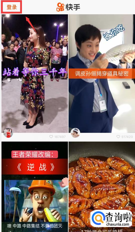 打开快手APP,并点击左上角的“登录”登录快手帐号。