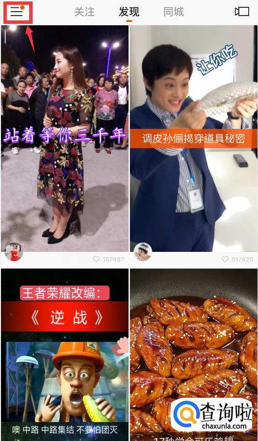 登录后,点击左上角的三条横线图标。