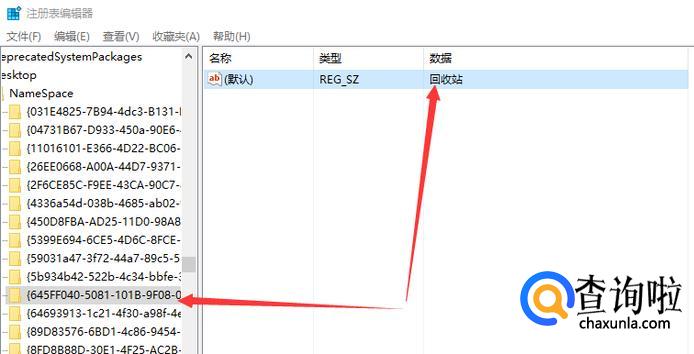 将数值数据更改为回收站,单击确定。