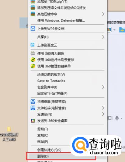在单击右键将文件删除之后。