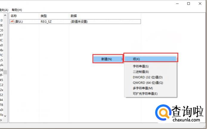 在右侧空白处,单击右键,选择新建/项。