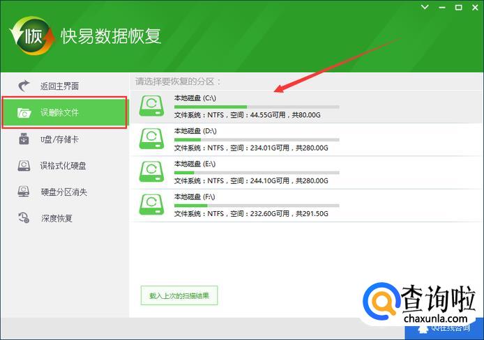 安装完成后进入软件,先选中误删除的文件,再选择文件原来存储的位置。之后会进行系统扫描,耐心等待几分钟。