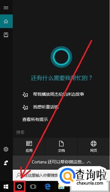 首先,点击Windows 10系统桌面左下角的“O”选项,进入搜索界面。