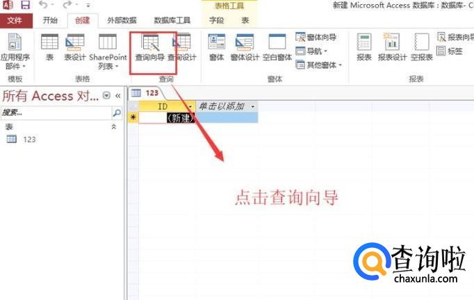 然后我们点击创建菜单下面的查询向导菜单,如下图所示