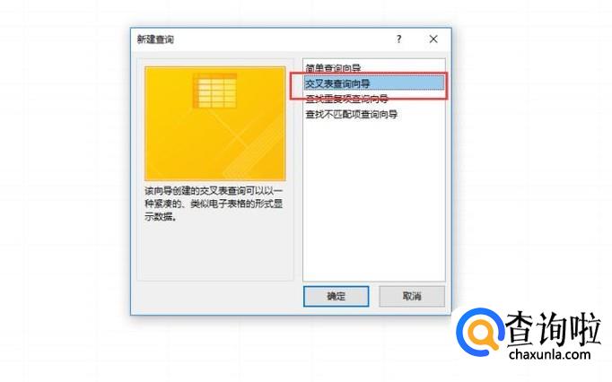 接下来在弹出的查询向导界面中我们选择交叉表查询选项,如下图所示