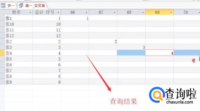 最后回到Access主窗体界面,你会看到交叉表的查询结果已经显示出来了,如下图所示