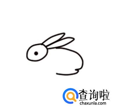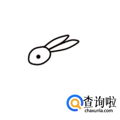在头部右上方画两个柳叶的形状,表示兔子的长耳朵。