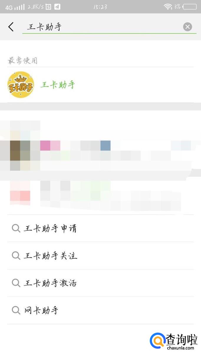 点击“搜索按钮”如图1箭头所示,搜索王卡助手。会进入一个新的界面,如图2所示。