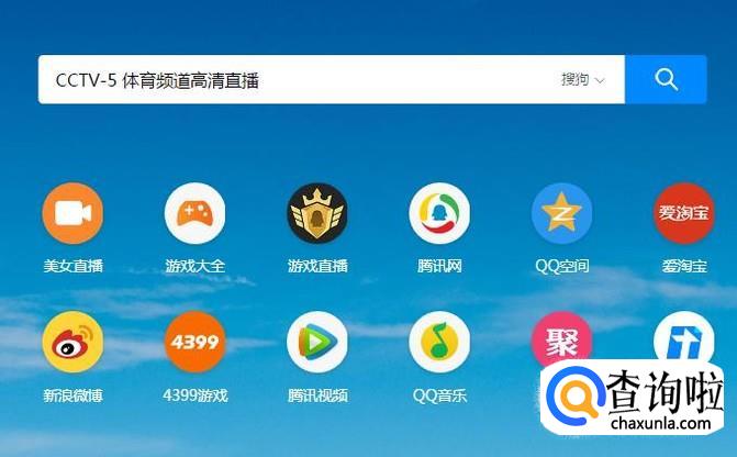 首先在搜狗浏览器中输入CCTV-5 体育频道高清直播并点击回车键,如下图所示。