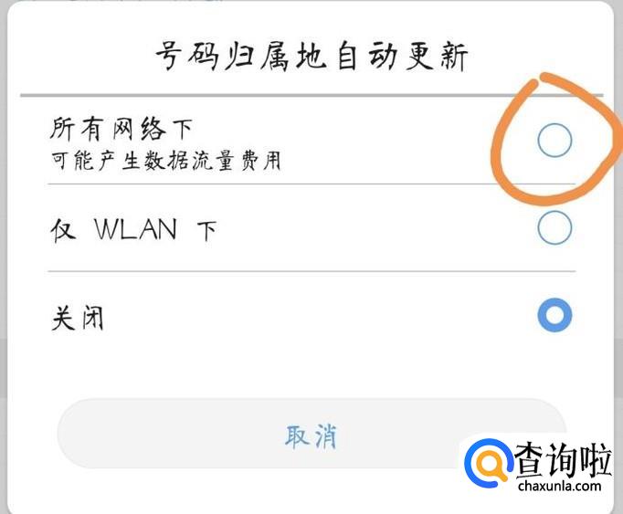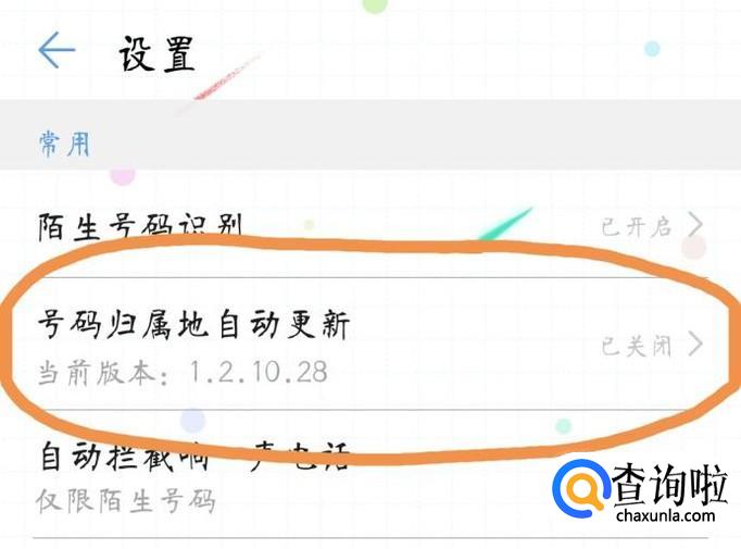 在设置界面找到“号码归属地自动更新”,点击进入