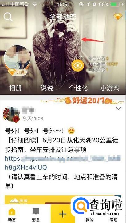 首先我们先在手机里面打开qq空间并登录在自己的账号。