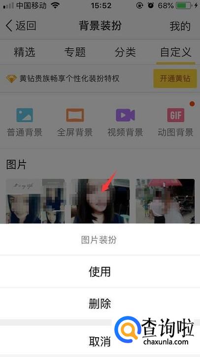 在自定义里面可以选择自己想要用的图片或者背景等等,选择好后点击下方的使用即可。