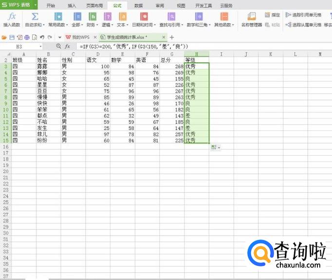将光标放在第一个成绩等级右下角,向下拉,即可得到所有的分数等级,如图