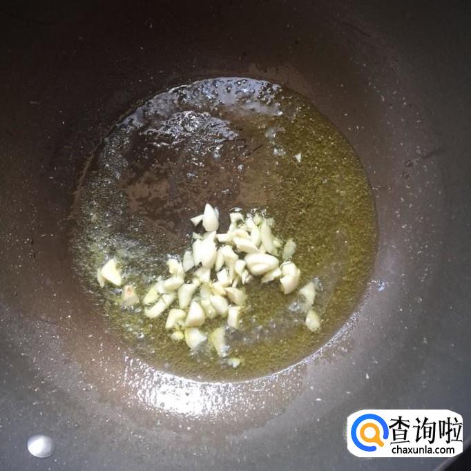 接着把蒜头切成蒜蓉,倒入油锅中爆香。