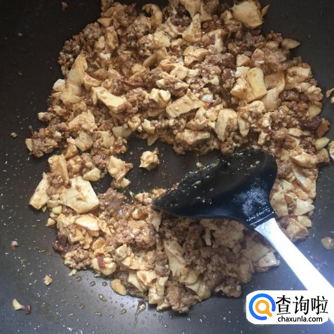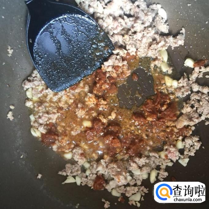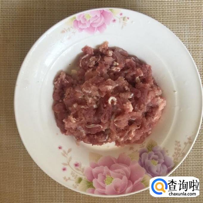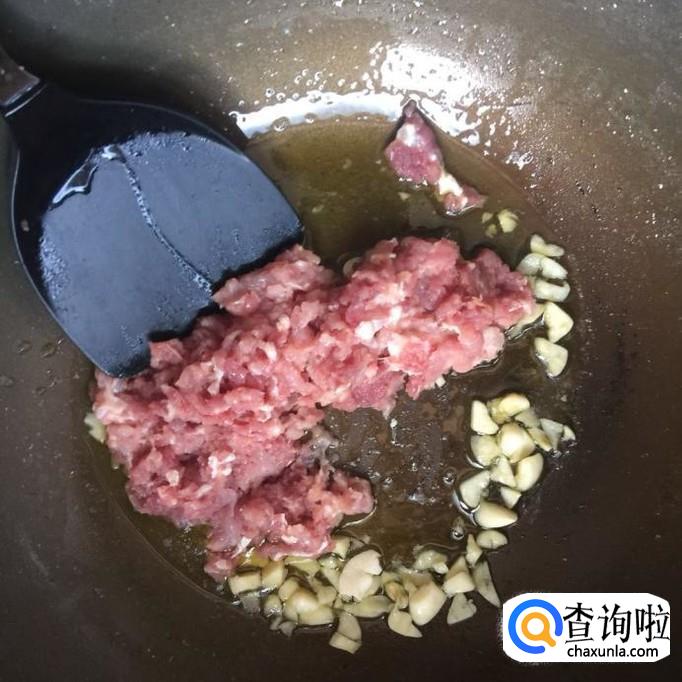 然后把瘦肉洗净剁成肉泥,倒入锅中翻炒三分钟。