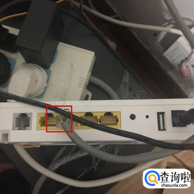 然后取一根网线,其中一端的水晶头插入光猫,如下图所示。