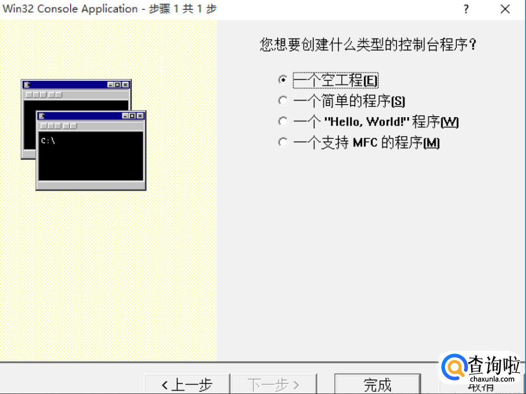 由于早期学习只需要控制台应用程序,我们选择Win32 Console Application。