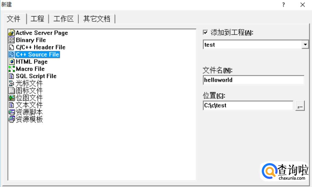 再新建C++ Source File(C++ 源文件) 。