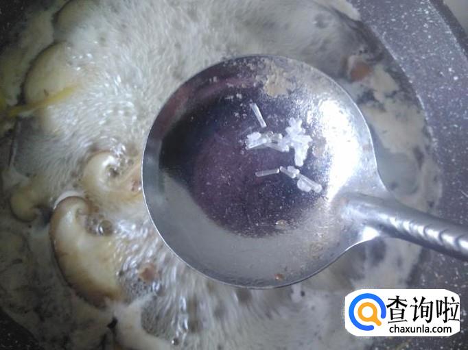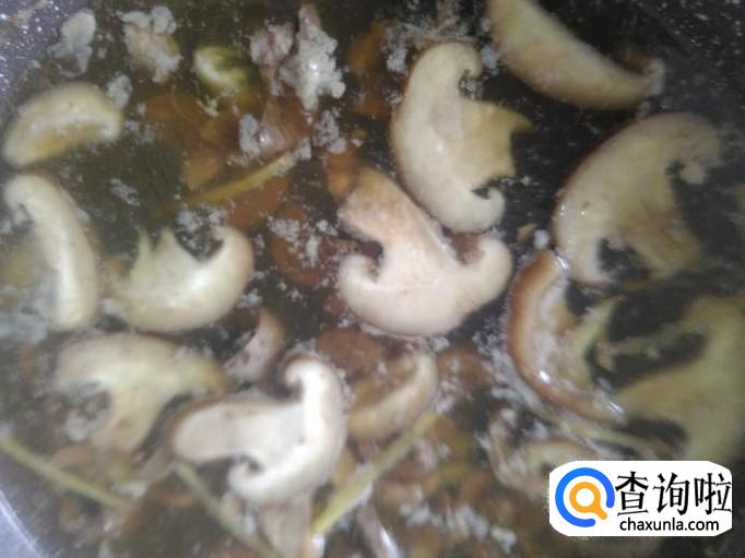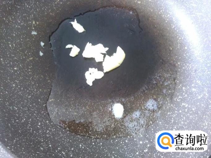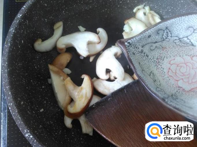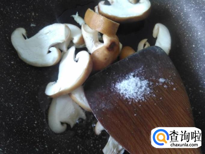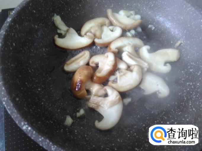 开火下油,放蒜米进去爆香,然后放香菇进去加适量的盐。