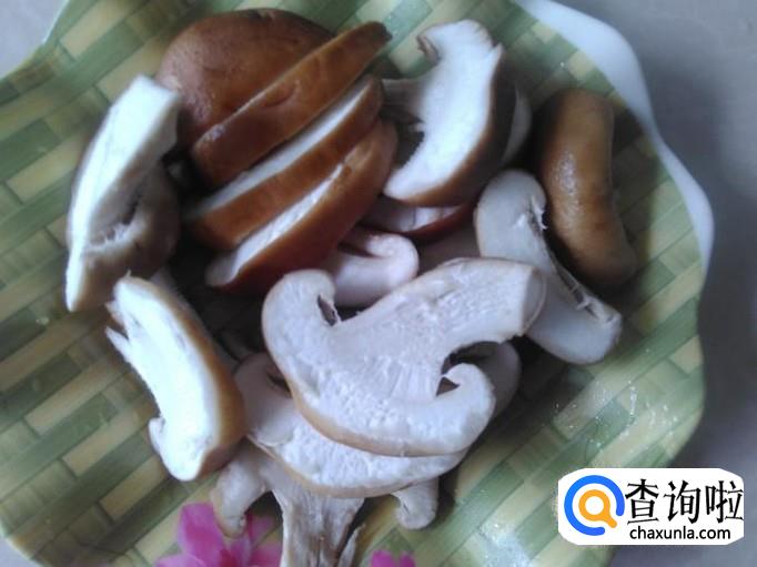 香菇去根蒂,然后清洗干净切成片。