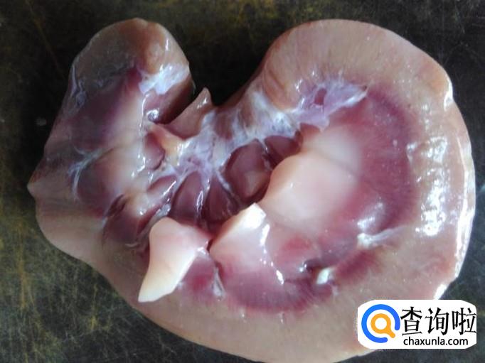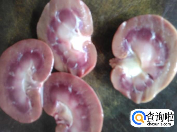 把羊腰切成两边,然后用刀把里面那白色的东西割掉。【割掉白色的东西就不会有骚味了】
