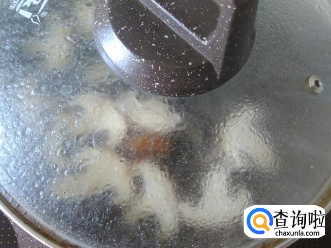 然后放2碗水进去,盖上盖子中火煮沸。