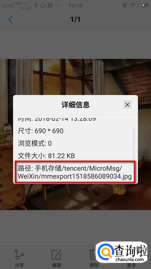 点击“详细信息”后,就可以看到图片在手机里的保存路径了;
