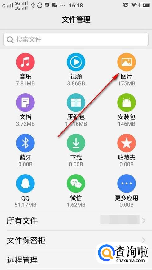 找开手机管理后,页面会弹出很多选择,点击“图片”;