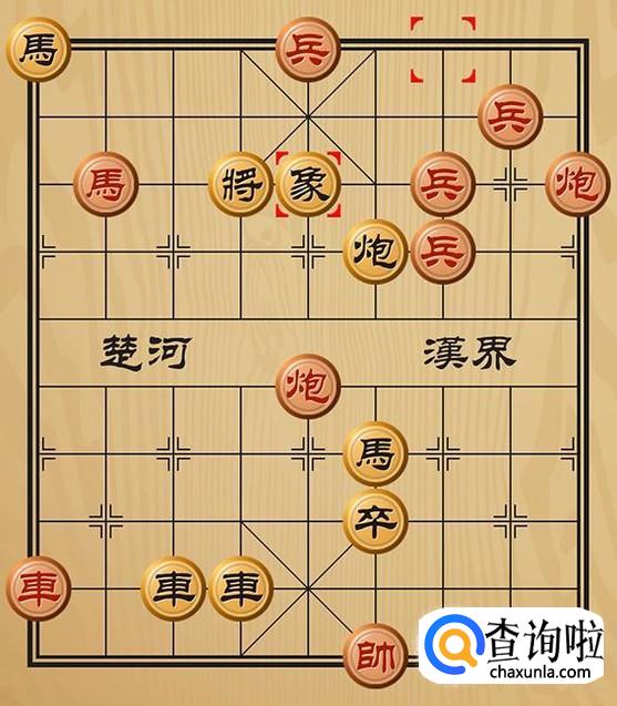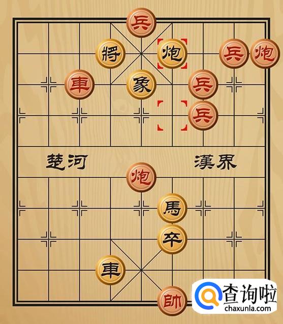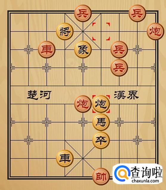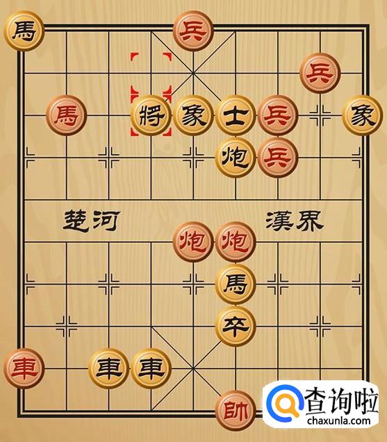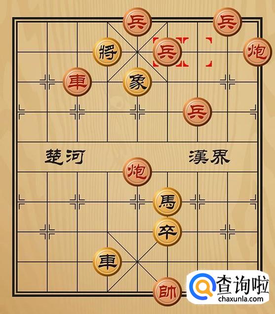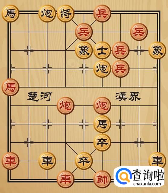 红方兵三进一将军,黑方只能炮6退4阻挡。