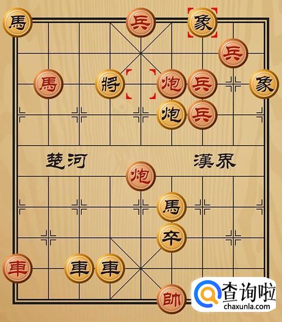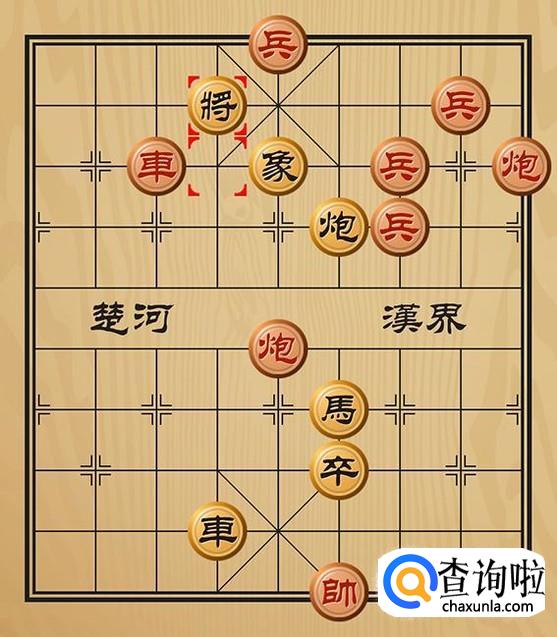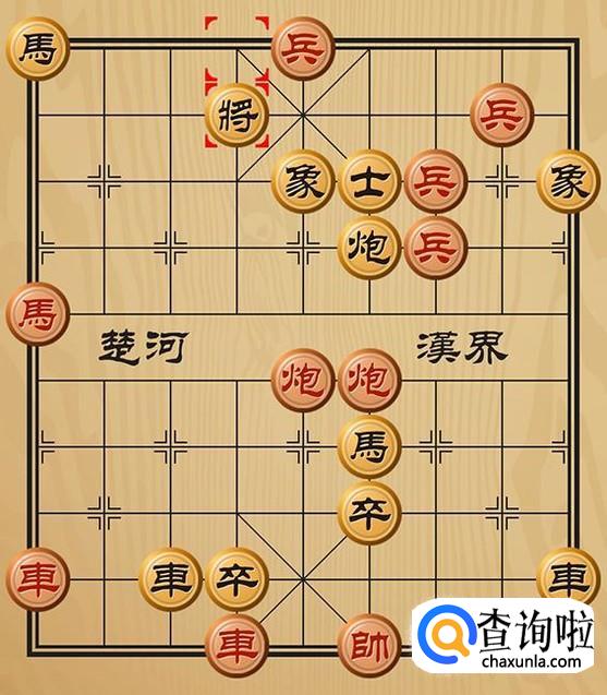 红方兵五进一吃掉黑方的炮将军,黑方只能将4进1躲避。