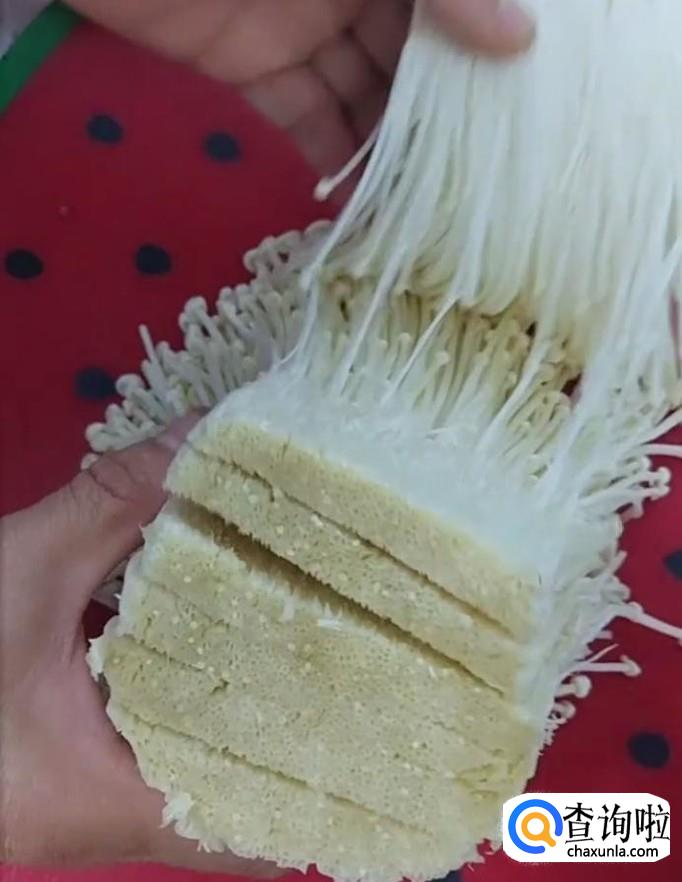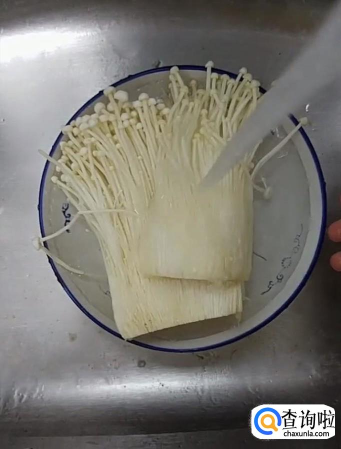 首先,我们将金针菇切除根部,撕成小朵,放在清水里面清洗干净备用