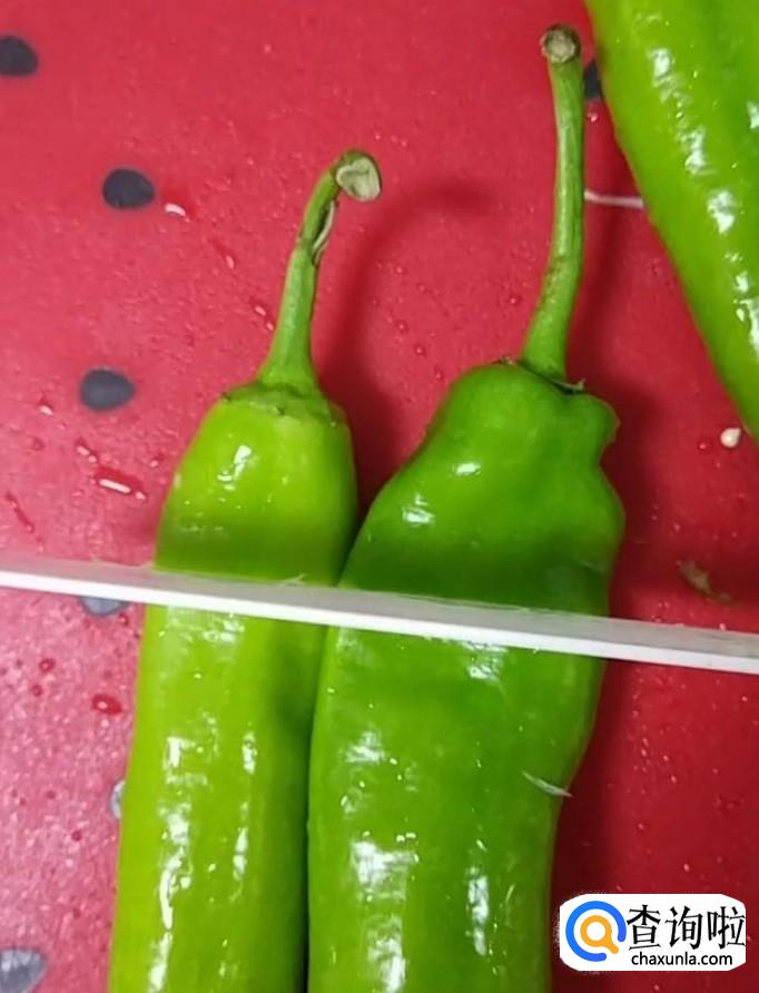 然后我们将青椒的顶端切除,把里面的籽清理干净备用