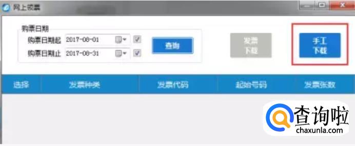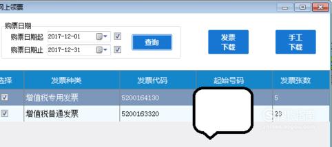 若点击发票下载按钮有错误提示,可点击手工下载,按提示选择发票类型和其他信息,确认无误点击下载。