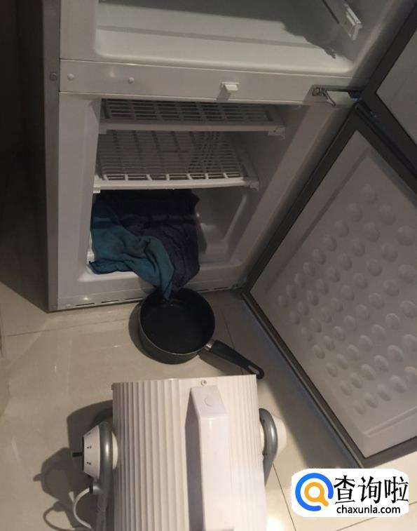 注意:如果霜层特别厚,建议使用电风扇吹,如果使用电吹风需要用手不断地切换位置,比较累,电吹风的负荷也比较大。