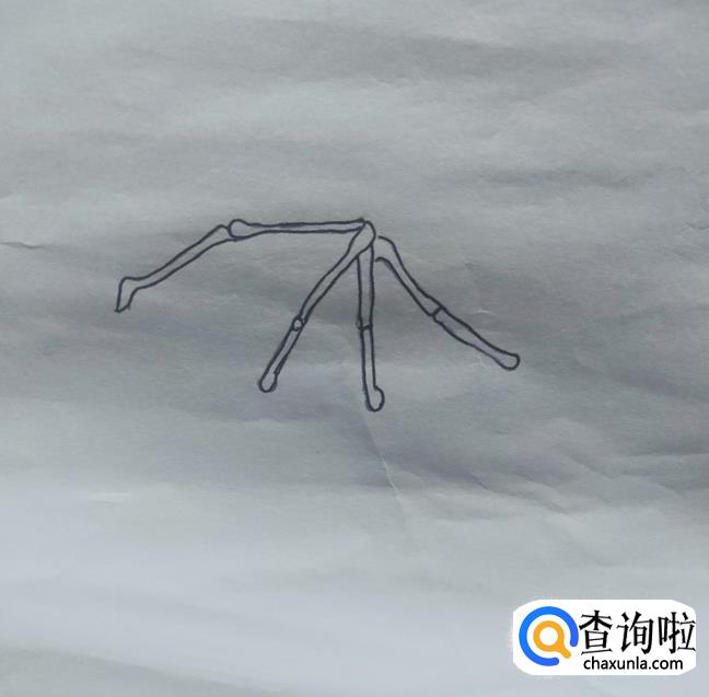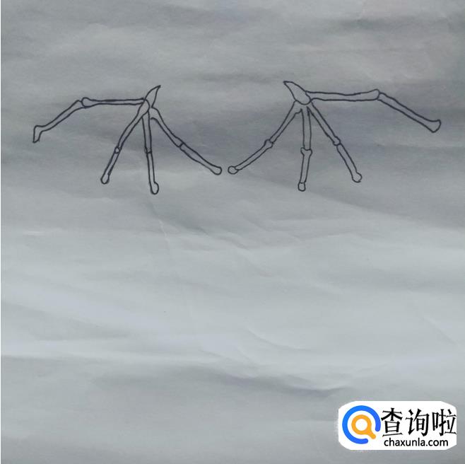 再画出一对翅膀的骨爪,像画一个锥形一样。