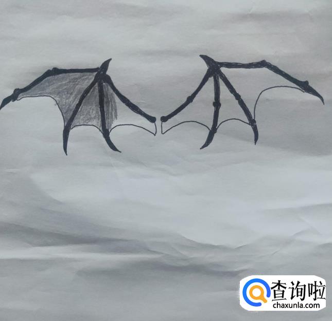 接着再把翅膀的骨翼画出来,画骨翼的时候需要画出弧度。