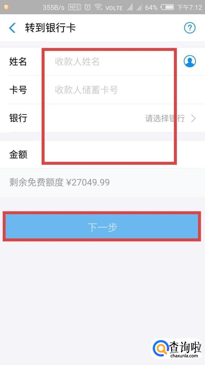 然后输入姓名、银行卡号、银行等信息就可以了。你的蚂蚁积分越多,你的免费提现额度也就越多。