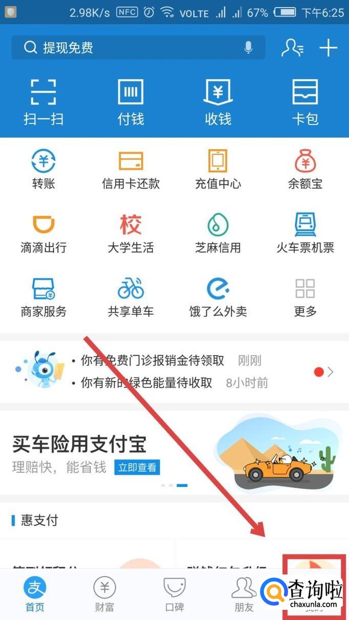 首先我们打开支付宝,在首页的右下角找到【我的】,点击进入。